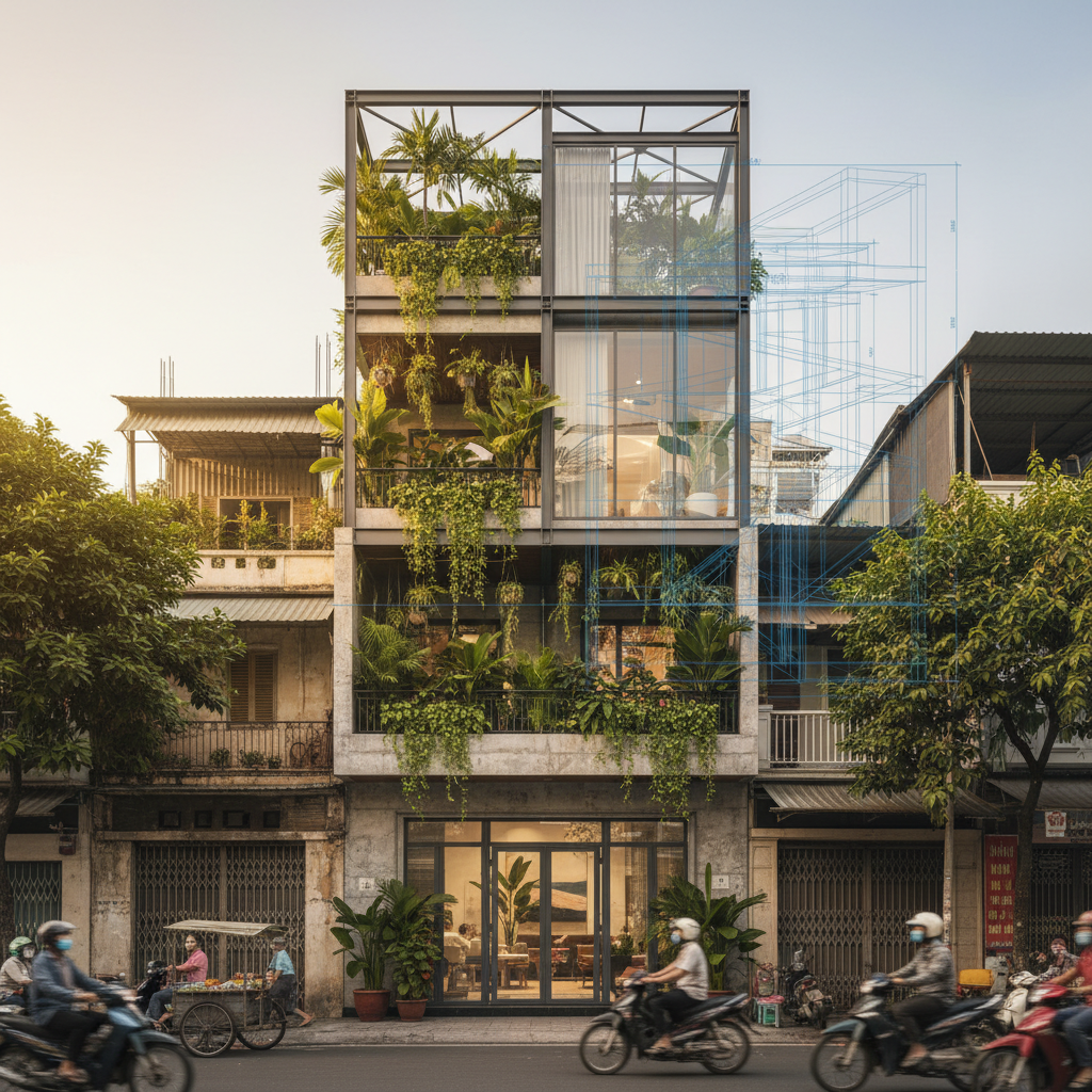 Giải Pháp Nâng Tầng Nhà Phố Trên Nền Móng Cũ Bằng Vật Liệu Nhẹ: An Toàn – Tiết Kiệm – Bền Vững