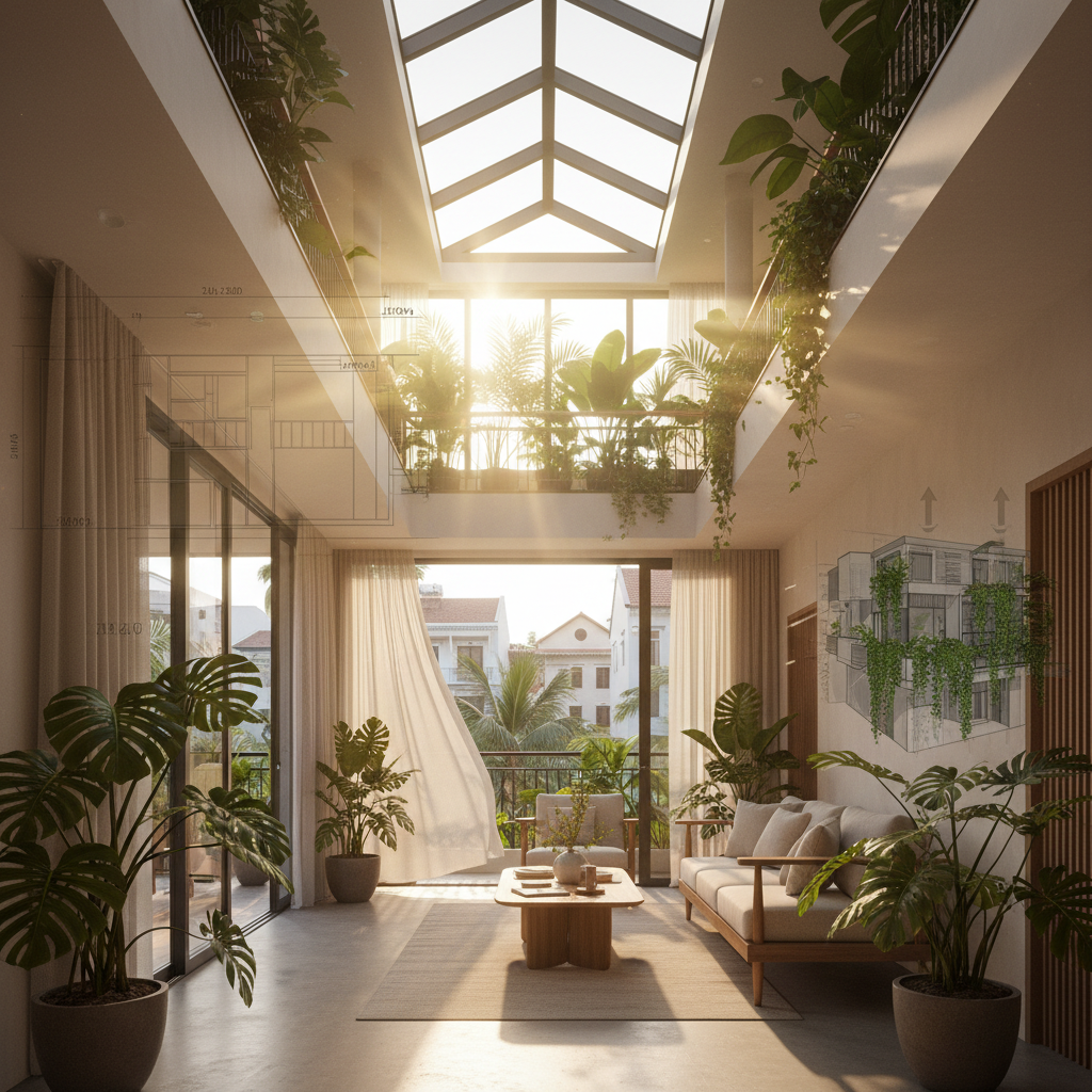 Ngôi nhà không chỉ là nơi che mưa che nắng, đó là không gian của ánh sáng, gió trời và những dòng chảy năng lượng tích cực.